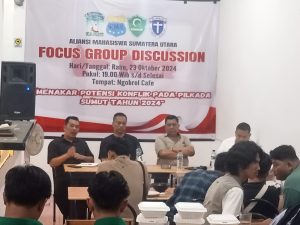 Aliansi Mahasiswa Sumatera Utara yang tergabung dari beberapa organisasi Mahasiswa yang terdiri dari KAMMI, HIMMAH, PMII dan GMKI, sukses menyelenggarakan FGD (Focus Group Discussion), yang mengambil tempat di Ngobrol Cafe dengan tema : “Menakar Potensi Konflik Pada Pilkada Sumut Tahun’2024”, pada hari Rabu, 23 Oktober 2024.