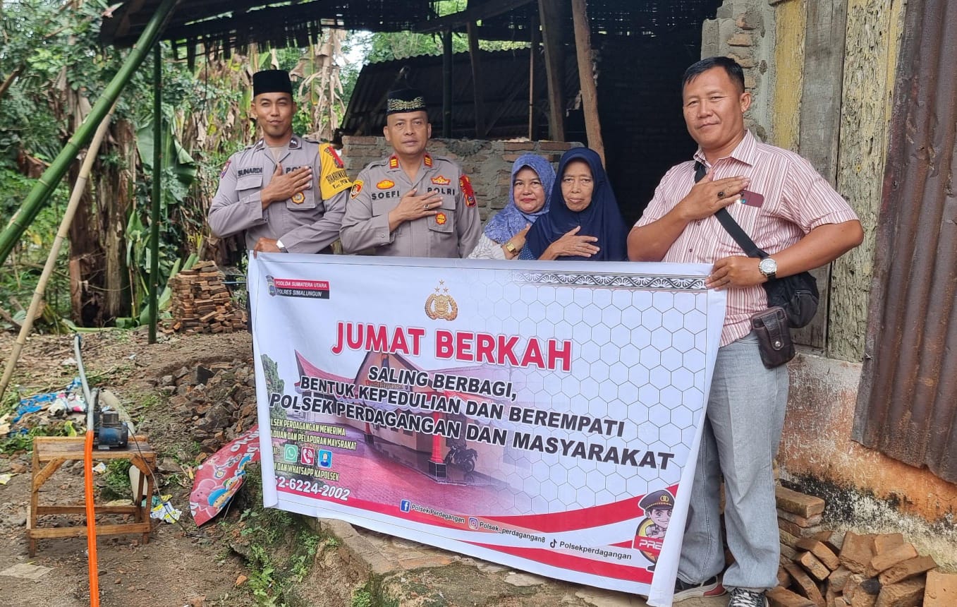 Dalam suasana yang penuh kebersamaan, Polsek Perdagangan di Kabupaten Simalungun melaksanakan program ‘Jumat Barokah’ pada tanggal 1 November 2024, yang dijadikan sebagai momentum untuk mendekatkan diri kepada masyarakat yang membutuhkan. Kegiatan ini dipimpin langsung oleh Kapolsek Perdagangan, AKP Ibrahim Sopi, SH, MH, dan berlangsung di rumah Ibu Saniyem, warga Nagori Purwosari, Kecamatan Pematang Bandar, yang rumahnya ambruk terkena angin beberapa waktu lalu.