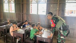 Satgas Yonif 642/Kps Dukung Program Pemerintah Dengan Membagikan Makanan Bergizi di Papua
