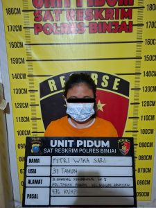 Tersangka berinisial FW (32), seorang ibu rumah tangga warga Kelurahan Tanah Merah, Kecamatan Binjai Selatan yang merupakan ART di rumah korban diduga mencuri perhiasan emas milik korban. Kronologi kejadian bermula ketika korban, hendak mengambil gaji ke bank, mendapati perhiasan emasnya hilang dari dompet penyimpanan di dalam lemari.