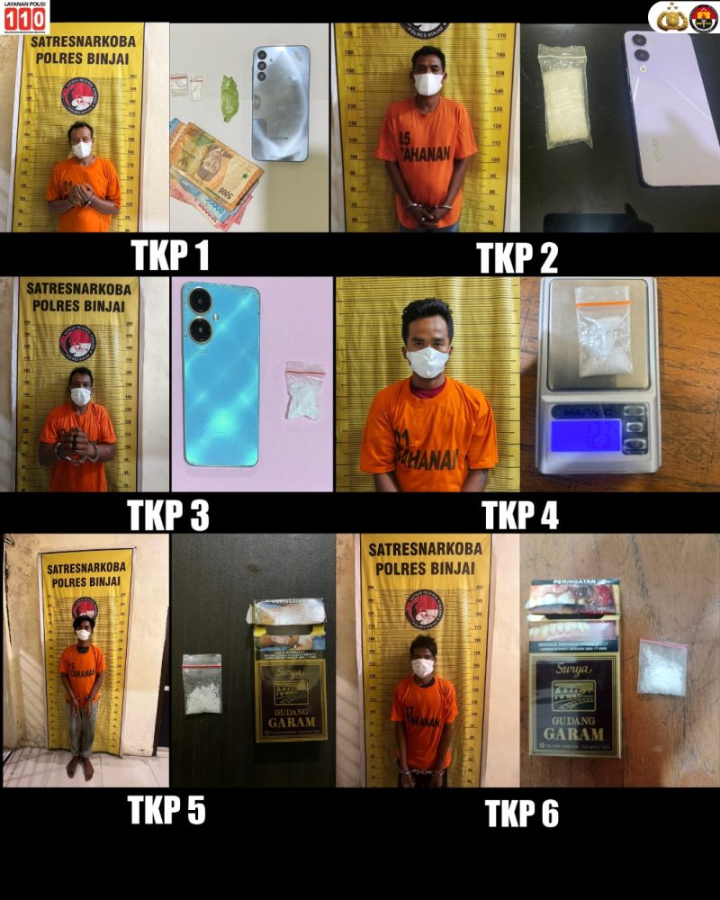 Dari pengungkapan tersebut, petugas mengamankan enam orang tersangka masing-masing berinisial HA (56), S (45), AS (42), DA (25), S (23), dan WTS (24) di enam lokasi berbeda yang berada di wilayah hukum Polres Binjai.